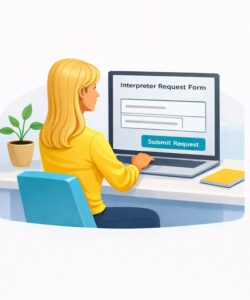 For after-hours emergencies, VRI (Video Remote Interpreting) may be available more quickly than onsite interpreters. Contact us as soon as you become aware of an urgent need and we will work to find a solution.