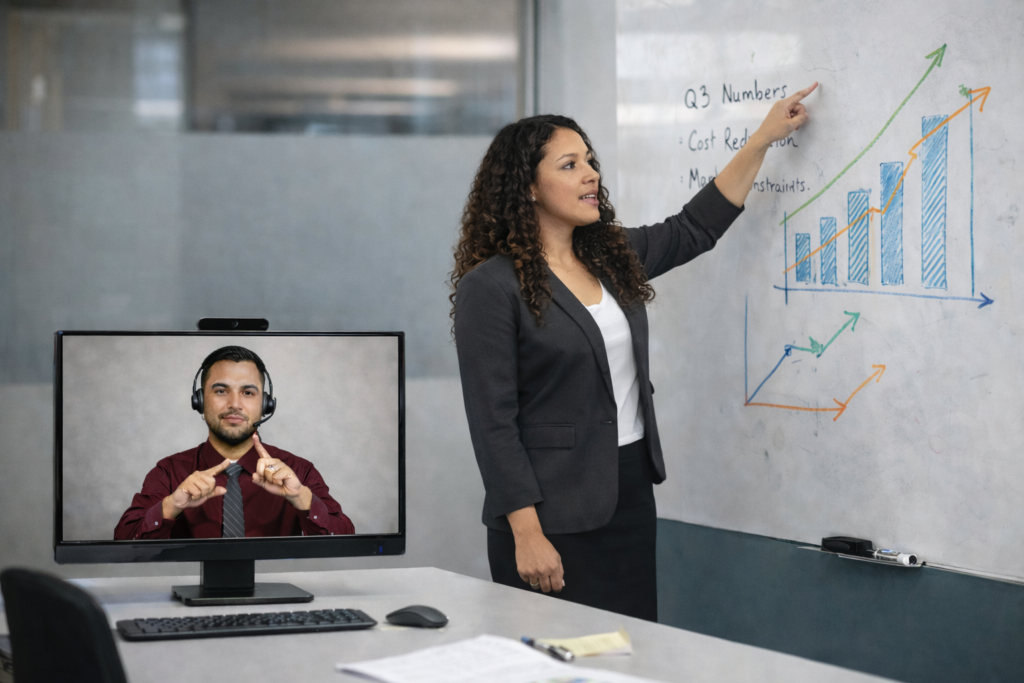 Team meetings, HR consultations, employee accommodations, training sessions, job interviews, and workplace accessibility compliance.